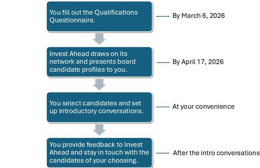 This program brings Invest Ahead's extensive network of highly-qualified Board candidates to you.